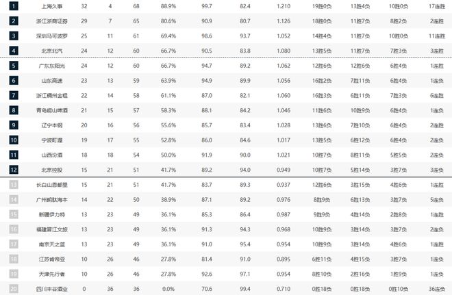 CBA36轮全部战罢,上海继续领先榜首,深圳第三、广东追到第5,辽宁上升至第9