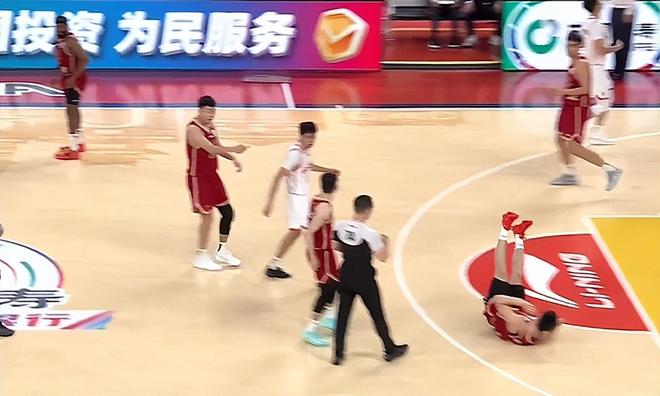 卢鹏羽起身后直接冲了上去将张宁撞翻倒地,裁判立刻吹罚了卢鹏羽违体犯规,而倒地的张宁却异常冷静。
