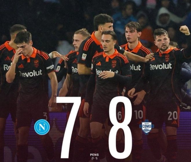 那不勒斯第2名主罚的球员卢卡库罚丢了,而科莫第4名主罚的佩罗内也罚丢。5轮下来双方都罚丢1球,只能继续加罚。最终直到第8轮才决出胜负。洛博特卡罚丢,他罚出的点球被扑了出去,非常无奈。最终,那不勒斯以7-8的总比分惨遭淘汰出局。法布雷加斯率领科莫挺进半决赛,目标直指冠军!