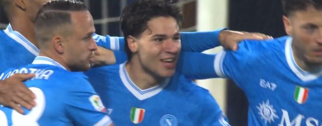 下半场刚刚开始不久,那不勒斯就扳平了比分。霍伊伦送出妙传,韦尔加拉前插,单刀推射破门,把双方拉回同一起跑线。第56分钟,阿达伊带球突入禁区,起脚射门,踢得太正了。门将轻松把球没收。4分钟后,那不勒斯进行大规模换人调整,斯皮纳佐拉、桑托斯和波利塔诺替补上场,奥利韦拉、马佐基和焦瓦内被换下。