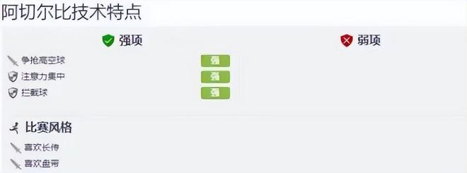 那个时候德转官网对阿切尔比的技术特点分析的时候,给出了这样的描述:弱项:无