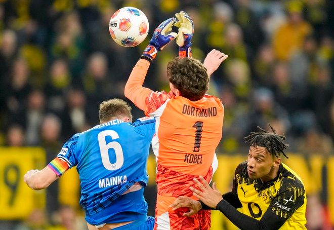 第40分钟,洪萨克犯规,被出示黄牌。4分钟后,多特蒙德进球了!门将出击接高空球脱手失误,安东抓住机会劲射破门。不过,很快海登海姆就扳平比分。尼许斯射门被挡出,倒在地上的他再射一脚,把球打进。半场结束,多特蒙德1-1海登海姆。多特蒙德上半场控球率66%,10次射门,3次射正,进了1球。而海登海姆上半场只有4次射门,同样进了1球。