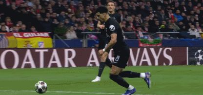 第14分钟,范德芬失误滑倒,格列兹曼单刀破门,马竞2-0!