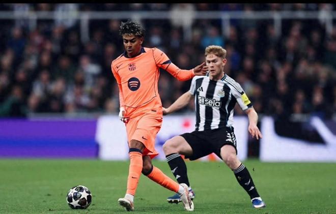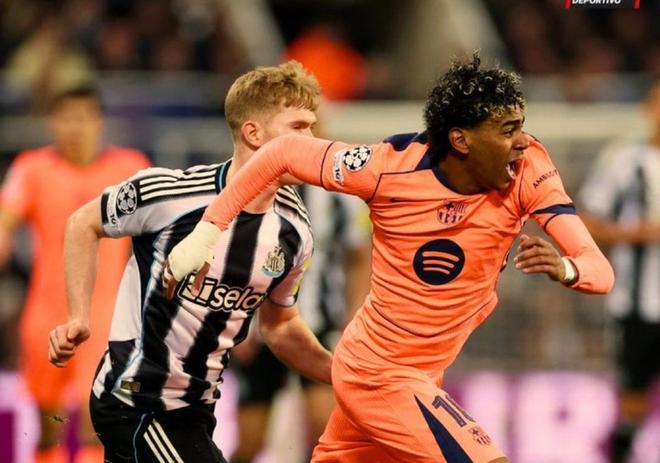第22分钟,亚马尔的表演时间:他漂亮盘带然后射门,被纽卡门将扑救。