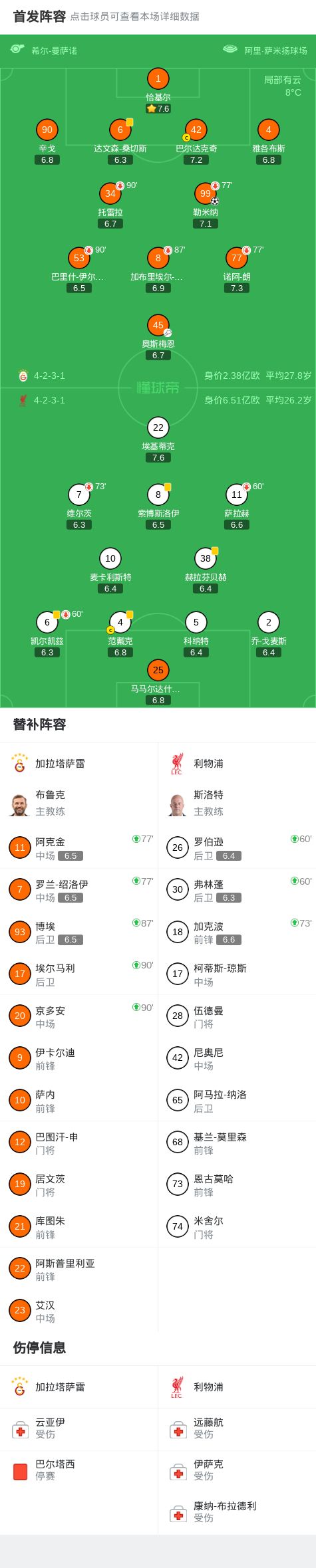 XbotGo丨利物浦0-1加拉塔萨雷,勒米纳破门,埃基蒂克失单刀