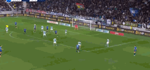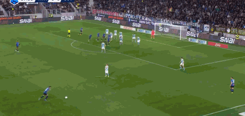 第9分钟,差一点,斯卡尔维尼头槌击中立柱弹出