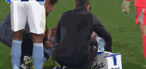 第28分钟,这下不轻,卡卢卢重重撞在场边广告牌