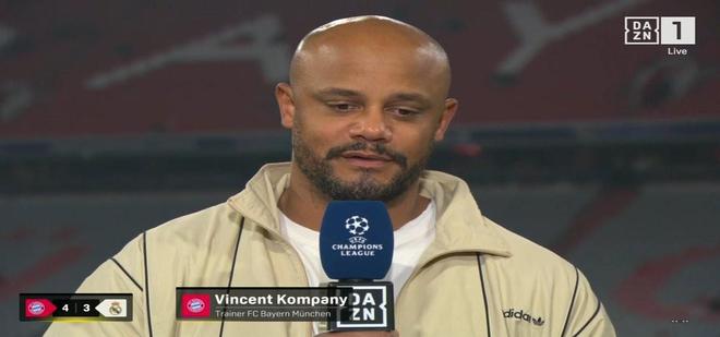 欧冠1/4决赛,拜仁慕尼黑总比分6-4淘汰皇家马德里晋级,赛后,拜仁主帅孔帕尼在接受DAZN采访时谈到了他将因累计三黄停赛缺席半决赛首回合的话题。