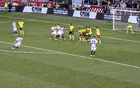 刺激!前后夹击下法甲球员惊天倒勾 进球后拒绝庆祝
