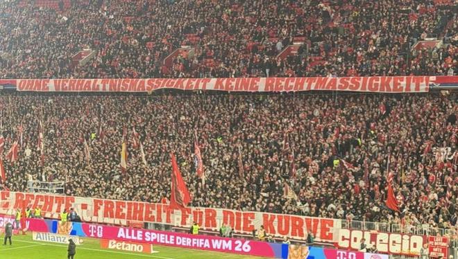 北京时间3月7日,德甲第25轮,拜仁慕尼黑4-1门兴格拉德巴赫。比赛开始前,安联球场南看台出现多条大型横幅,表达球